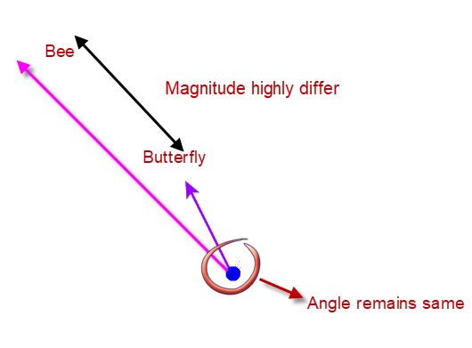 Even in our example, if “bee” appeared 5000 times and “butterfly” appeared 5 times then the magnitude will highly differ but the angle remains same.